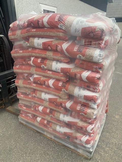 Gode 8 mm træpiller Brænder godt og velegnet til hestebokse, da pillerne har god suge evne.
